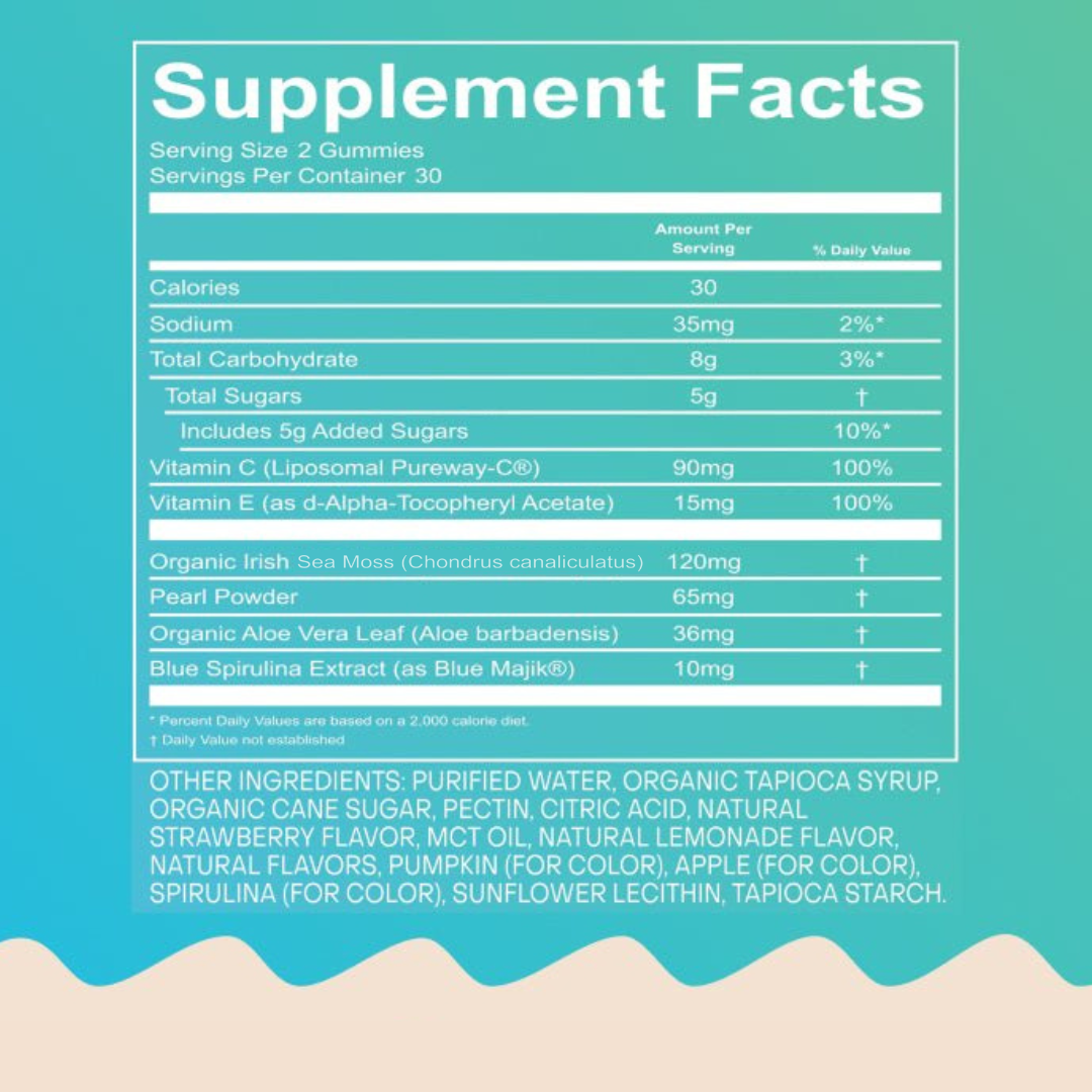 Akasha Superfoods GLOW Sea Moss & Pearl Powder, 120 Gummies