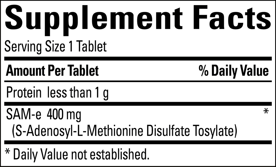 SAM-e is a molecule made in the cells of our bodies. However, SAM-e levels can run low due to various factors such as diet and aging. Nature Made® SAM-e Complete®◆ supports a healthy mood in as little as 7–14 days when taken daily. SAM-e also provides a source of sulfur, a critical component of joint tissue. Adults, take 1 tablet daily with water on an empty stomach.Shipping Policy