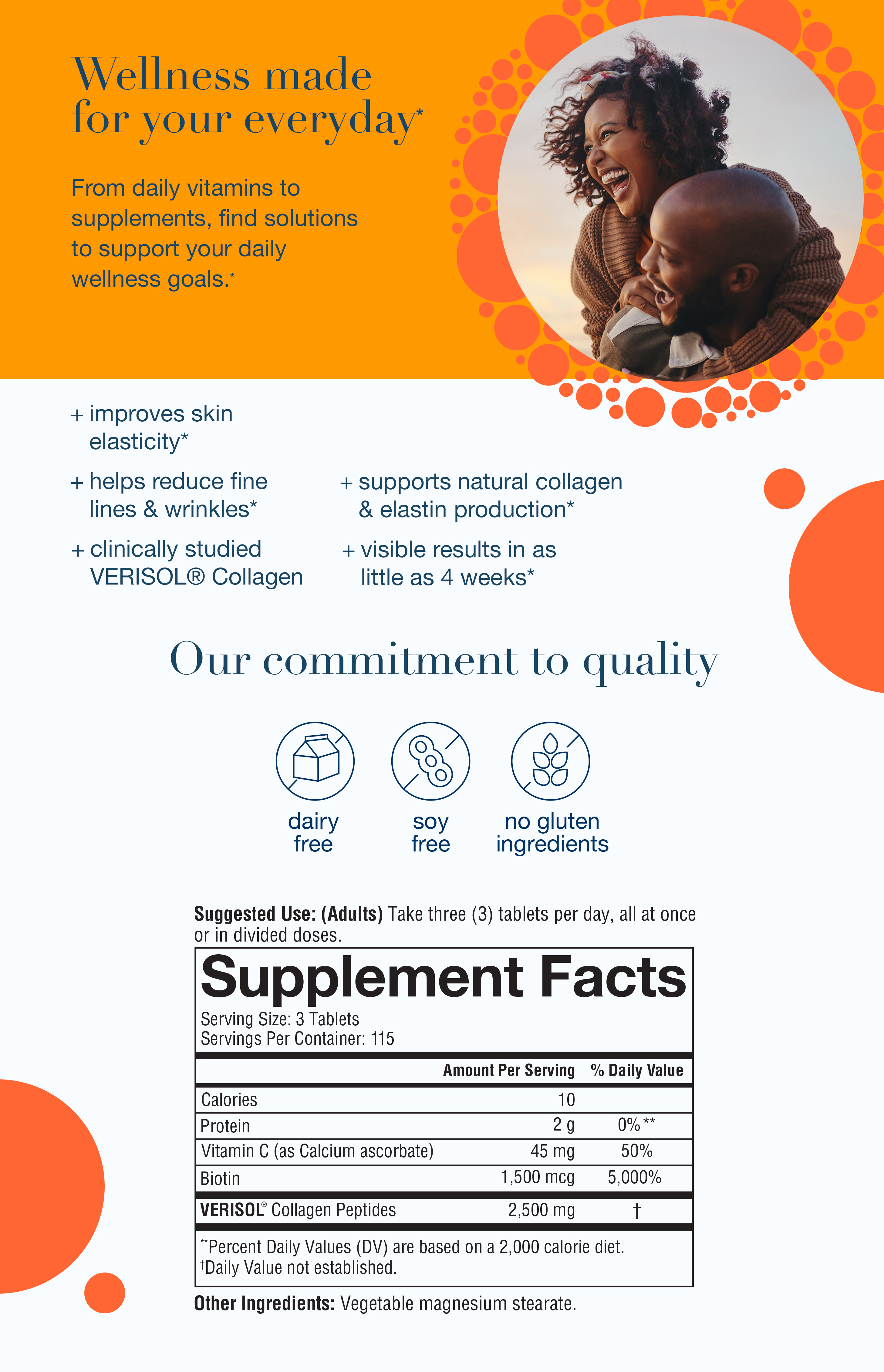 Radiant beauty begins from within with youtheory concentrated effect Verisol collagen. This triple threat formula is designed to deliver powerful beauty nutrients with clinically studied Verisol collagen peptides, beauty boosting biotin and antioxidant-rich vitamin C.