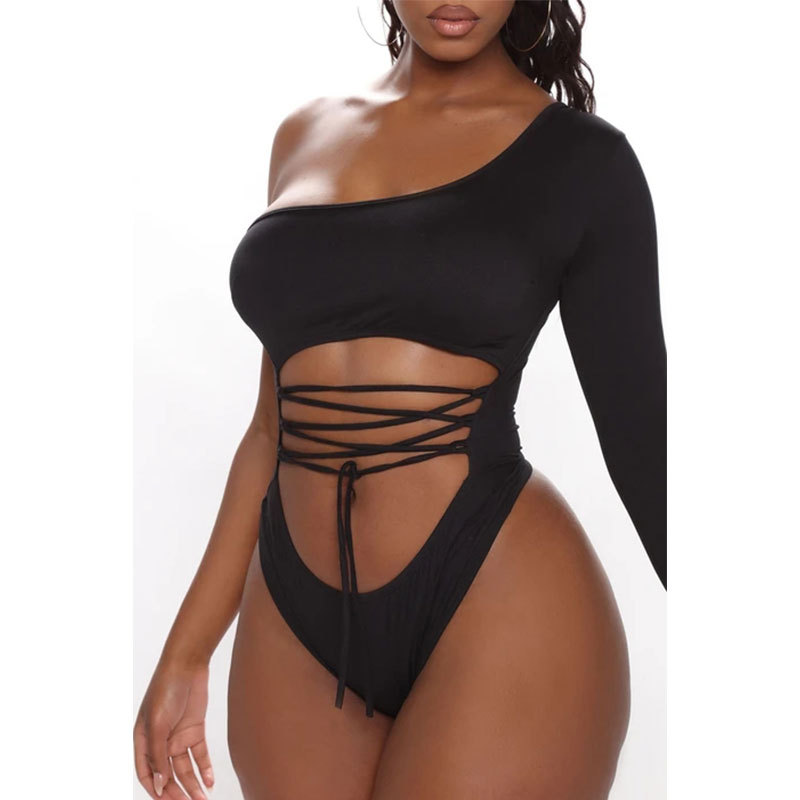 Skinny Slimming Bodysuit One-Shoulder Diagonal Collar Bottoming Long Sleeve